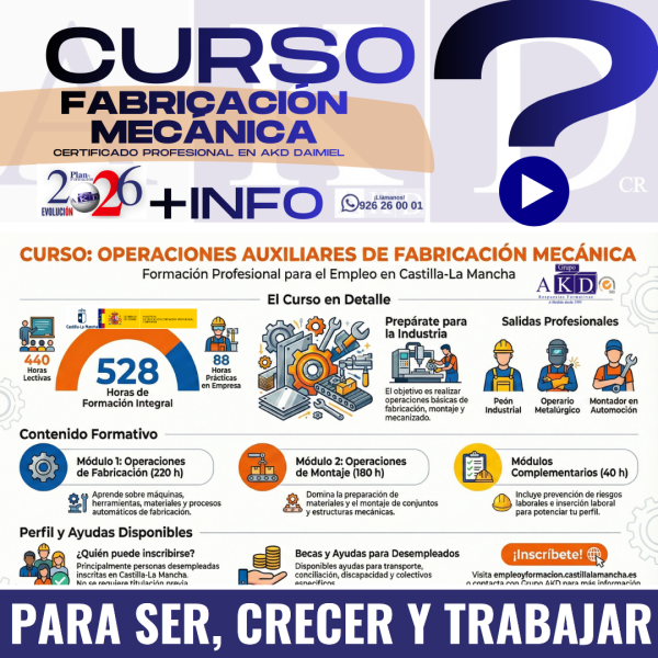 Si lo prefieres o tienes dudas, LLámanos al 926 26 00 01 y nosotr@s te inscribimos y te invitamos a la presentación del curso.