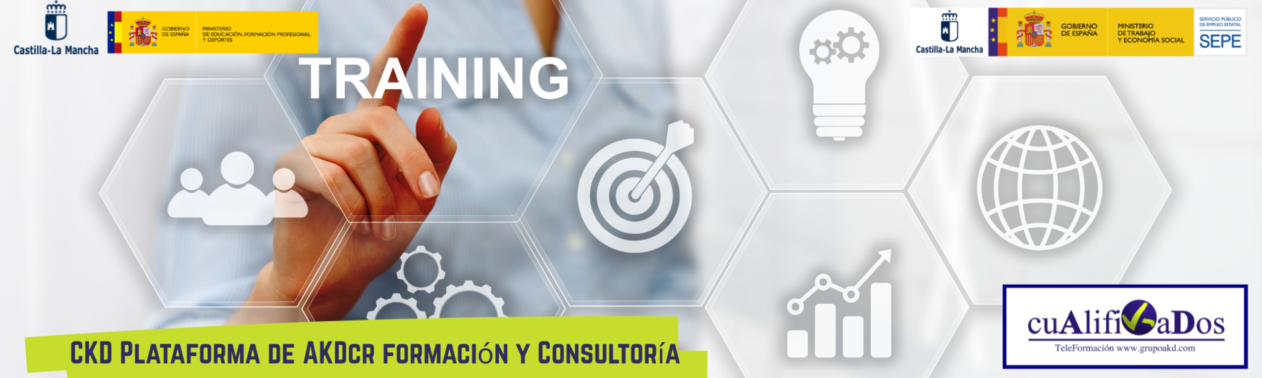 Actualmente el proyecto #cualifikados es una herramienta de teleformación permanente para empresas y trabajadores (tanto activos como en búsqueda de empleo) gestiona, coordina e imparte Certificados de Profesionalidad con posiblidad de gestionarlos a través de los Contratos para la Formación y aprendizaje dirigidos principalmente a jóvenes sin experiencia. .